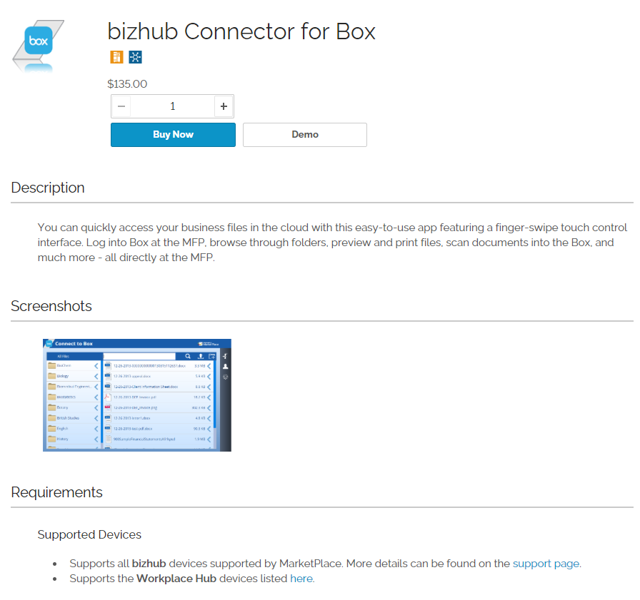 在市场详细信息页面上,您可以找到MarketPlace产品的更多信息,包括产品,详细说明,屏幕截图,设备要求,用户指南,服务和支持信息等。 请参阅下图示例: