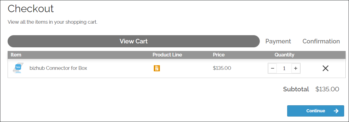 购买您已经加入购物车的产品,点击 继续 按钮,完成结账步骤。